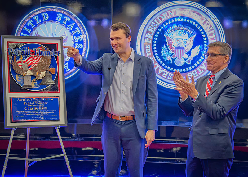 Recipients of the award include Tony Orlando, Kimberly Fletcher, General Michael Flynn, and Charlie Kirk.